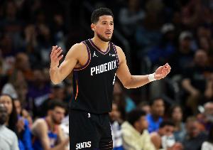 主攻手!布克打满首节10中6砍下15分 罚球3中3