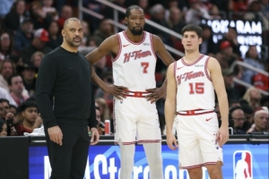 火箭球迷:因为我们没有可靠的控球手,我们 2.11 米的球员必须像后卫一样打球才能落位。杜兰特的大部分失误都是因为想把球传给申京。这本不是他的活,但他试图把球传进内线,结果就失误了。申京的失误则来自于不得不在人群中杀出一条血路冲向篮筐。归根结底就是这样,我们最好的球员看起来打得很马虎,而且其中一个效率低下,就是因为我们没有一个真正的控球后卫。